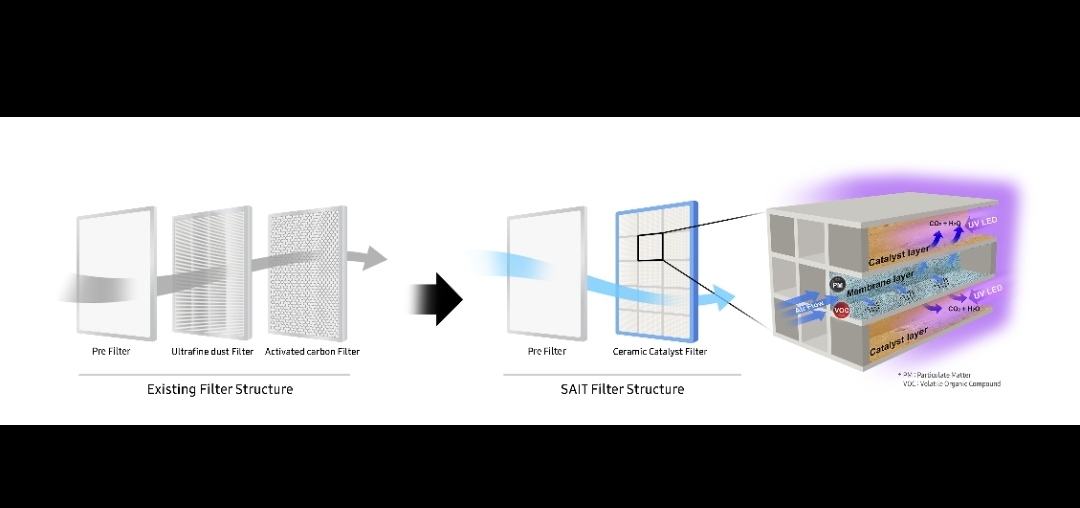 Samsung Electronics Co., Ltd., presentó una nueva tecnología de filtro de aire que recolecta simultáneamente partículas (PM) y descompone los Compuestos Orgánicos Volátiles (COV), pudiendo usarse durante 20 años a través de lavado simple con agua. Un estudio sobre la tecnología se publicó en la revista Nature Communications del Reino Unido.